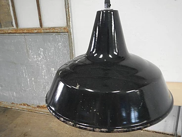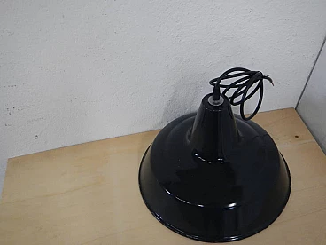 Black metal ceiling lamp with white inside, 1940s