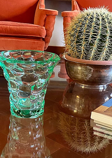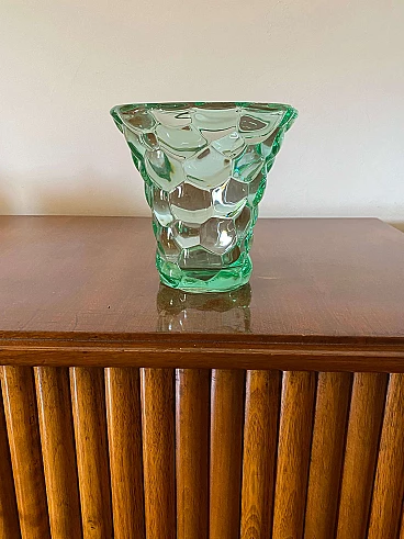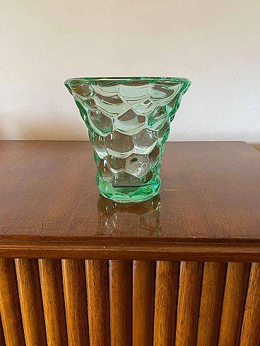 Aqua green glass honeycomb vase by Pierre d'Avesn, 1930s