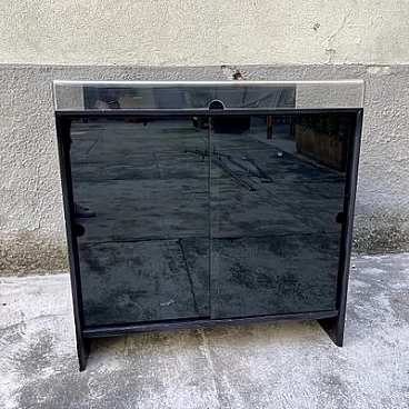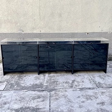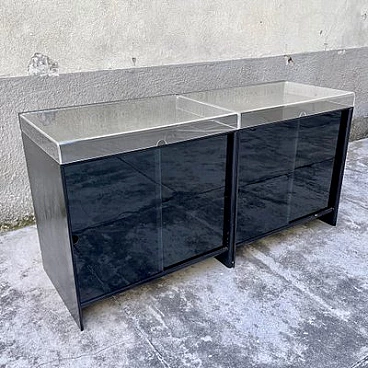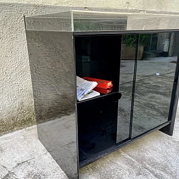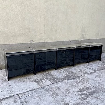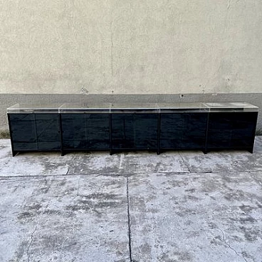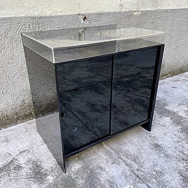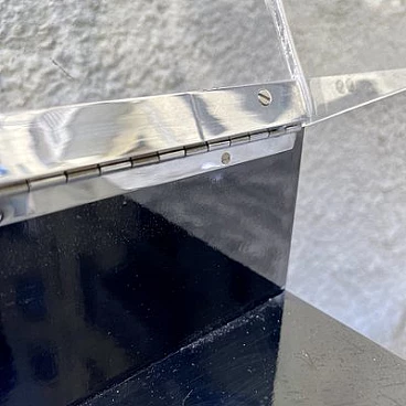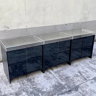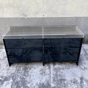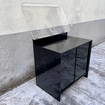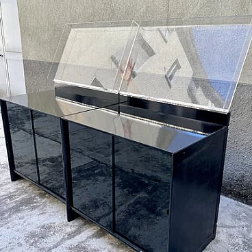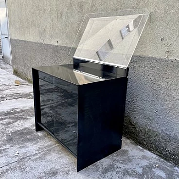 Black lacquered wood display case with plexiglass openable top, 1970s