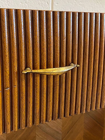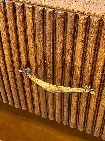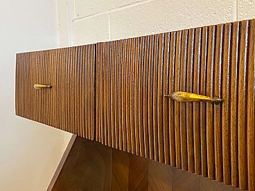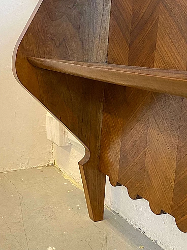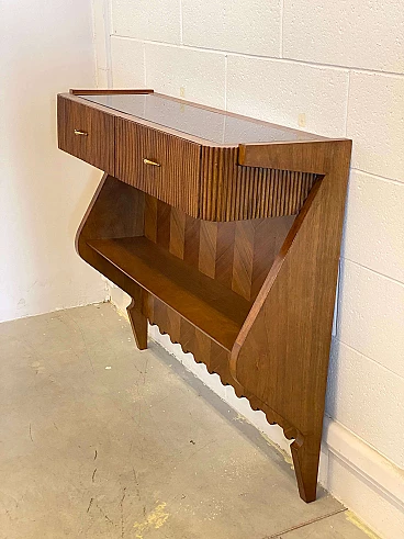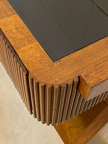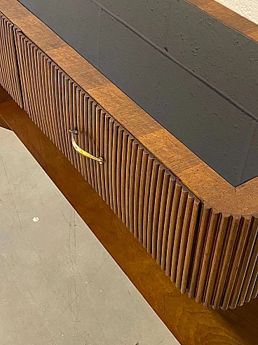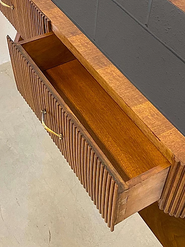 Walnut console with black glass top in the style of Paolo Buffa, 1940s