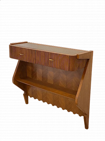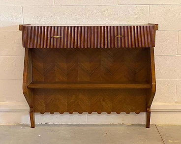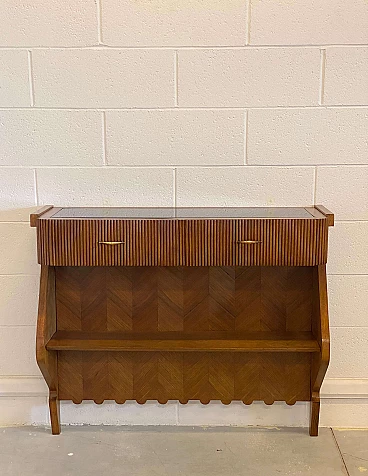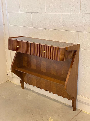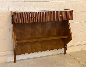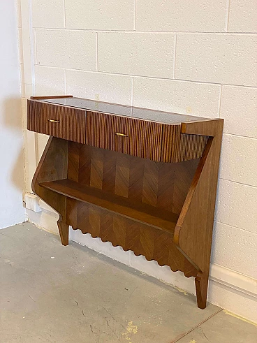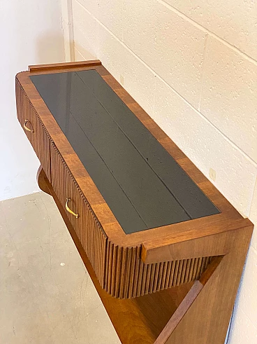 Console table in the style of Paolo Buffa, 1940s. Walnut structure equipped with two drawers, black glass top (not original of the period).