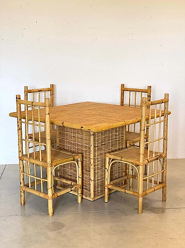 4 Chairs and table in bamboo in the style of Vivai del Sud, 1970s