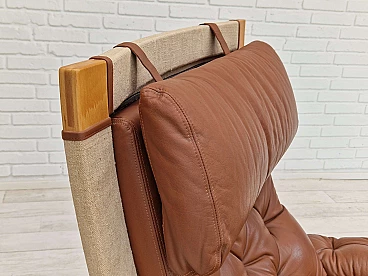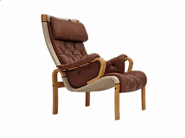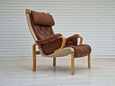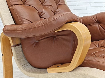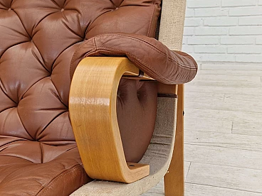 Danish leather and curved beech armchair by Jeki Møbler, 1980s