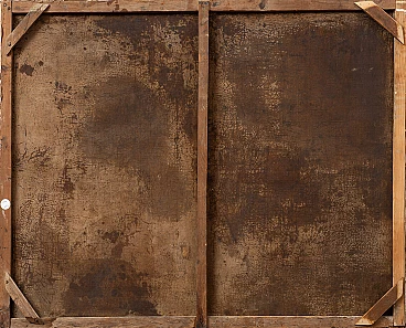 Oil painting on canvas depicting Rest on the Flight into Egypt, referable to the exquisite production of the Neapolitan school of the first half of the 18th century. The whole scene is connoted by the dominance of brown and ochre colors, from which only Mary's dress, in the traditional blues and greens, differs; in the background, a clear sky in the colors of a newly dawned sunrise, with rosy hues. The theme of a sacred nature takes on a familiar connotation in this scene, full of tenderness and intimacy that are really very earthly: Joseph and Mary sit resting during their flight to Egypt to escape Herod's persecution; the mother holds baby Jesus on her lap, looks tenderly at him and swaddles him, while Joseph is dedicated to reading serene and relaxed. Painting complete with certificate of authenticity.