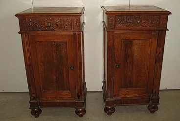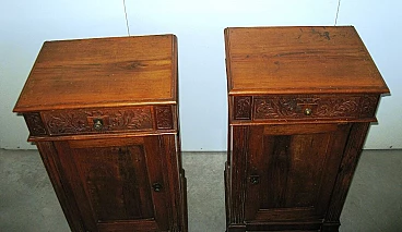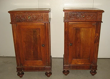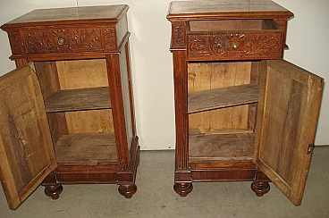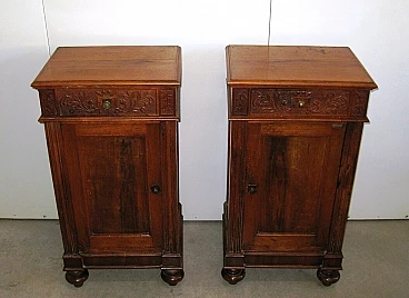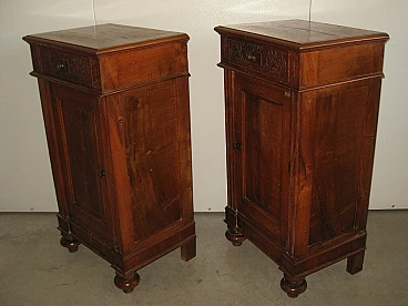 Pair of Lombard solid walnut bedside tables, early 20th century