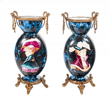 Pair of ceramic vases with bronze details, second half of the 19th century