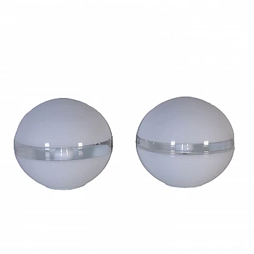 Pair of table lamps. Glass and metal. Lamp in good condition, shows small signs of wear.
