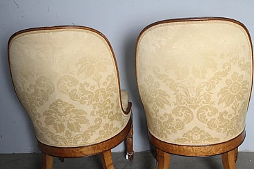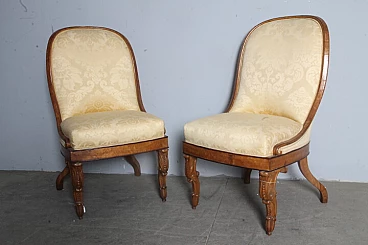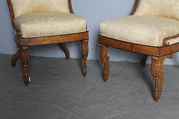 Pair of Charles X walnut and damask fabric chairs, mid-19th century