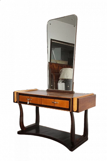 Art Deco vanity table in birch, walnut and mahogany wood, 1940s