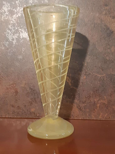 Yellow blown glass goblet vase with gold dust and spiral decoration, 1970s