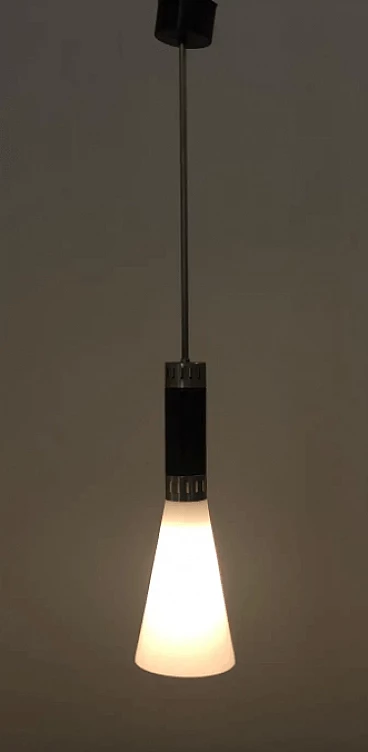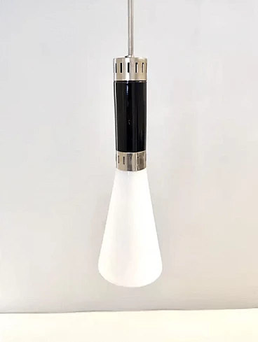Opal glass and chrome-plated brass pendant by Stilnovo, 1960s