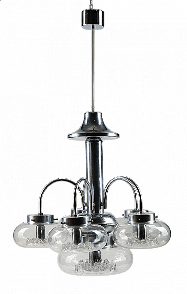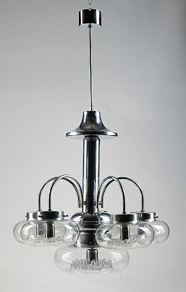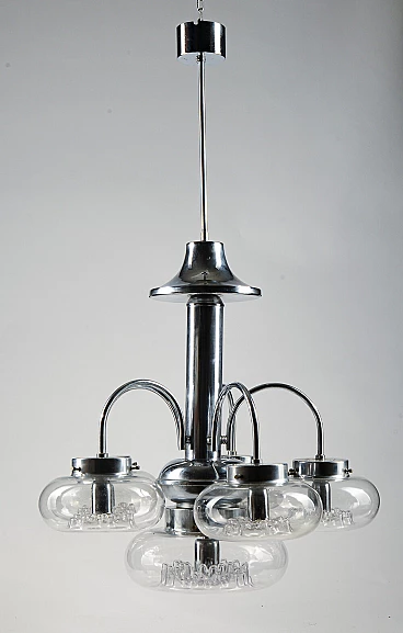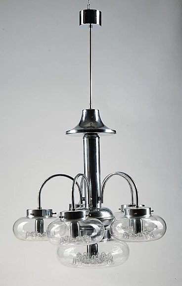 Six-light Murano glass and chrome-plated metal chandelier, 1970s