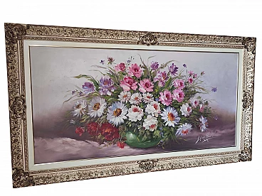 Painting "Floral composition" by Lina Rossi. Complete with wooden frame. The measurements are inclusive of the frame.