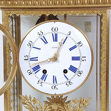 Well-proportioned with a beautiful contrast between marble and gilded bronze, very pleasant pendulum to look at. Original mechanism, chiming of the hours and half-hours. La Vallèe mark on the dial and behind the sun/pendulum. Original box with obvious signs of wear. Stock, tested, working.