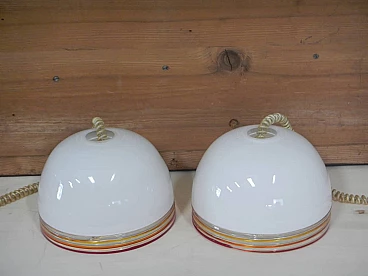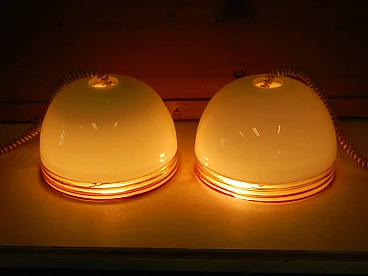 Pair of Murano glass hemispherical chandeliers by Roberto Pamio & Renato Toso for Leucos, 1970s