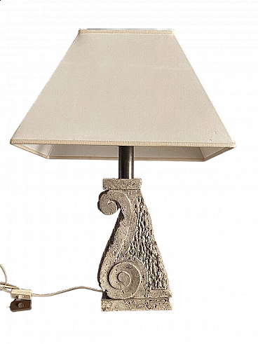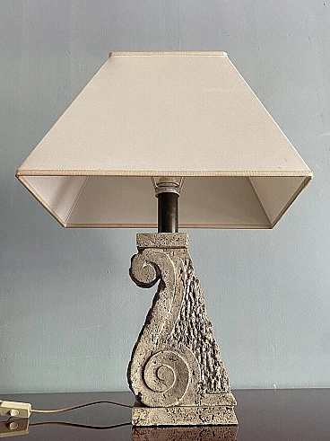 Hollywood Regency table lamp in travertine and brass, 1970s