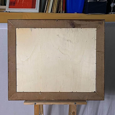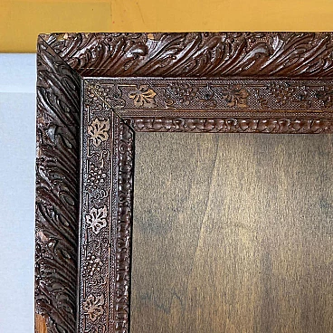 Ancient wooden frame and tablet of liberty taste attributable to the first thirty years of the twentieth century, Italian manufacture, probably Sicilian.
