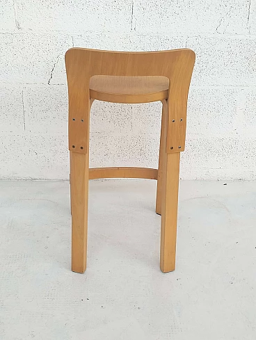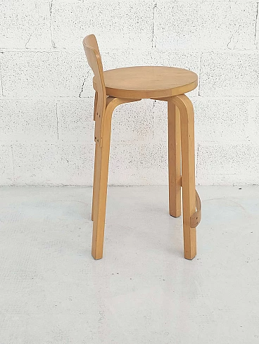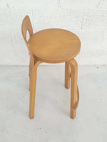 K65 bent birch plywood stool by Alvar Aalto for Artek, 1970s