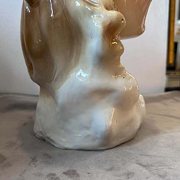 Polychrome ceramic bust of the blindfolded goddess, synonymous with luck, produced by Ceramica Artistica Punziano of Naples in the 1950s. In original condition with normal marks on the glaze, marked on the bottom and labelled with the original label of the Roman shop that sold it. This ceramic bust is a splendid example of the artistic style and design trends prevalent at the time. The bust is made of high-quality ceramics, a popular material for mid-century modern art. Pottery was appreciated for its versatility, which allowed artists to experiment with various shapes, textures and glazes. In this case, the bust is sculpted, with special attention paid to the details and proportions of the goddess' face and features. The blindfolded Goddess of Naples is a symbolic representation of luck. It is a medium-sized sculpture, suitable for display on a table or mantelpiece. Its compact dimensions allow for easy integration into various design environments, whether in a living room, study or office.