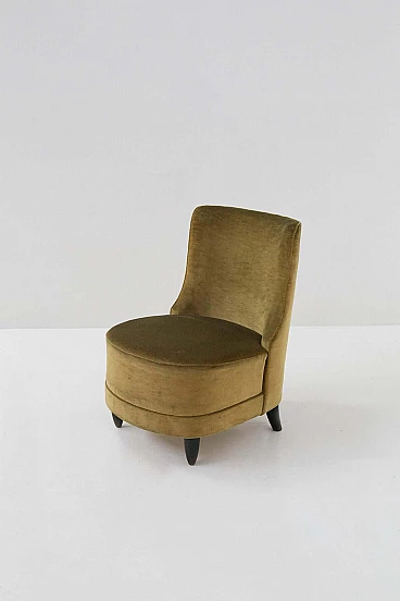 Italian Bedroom Armchair adorned in its original green velvet, harkening back to the glamour of the 1950s. This exquisite piece exudes an air of nostalgia, preserving the beauty of the past while inviting you to bask in its comfort.