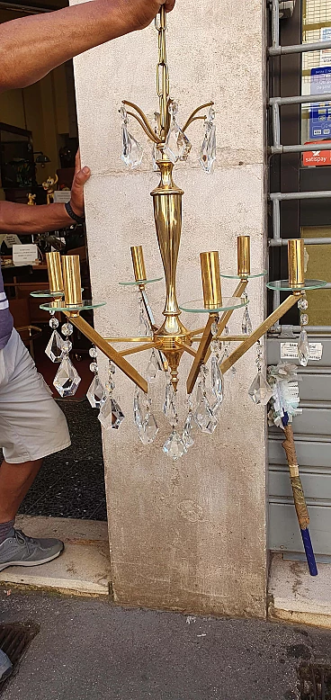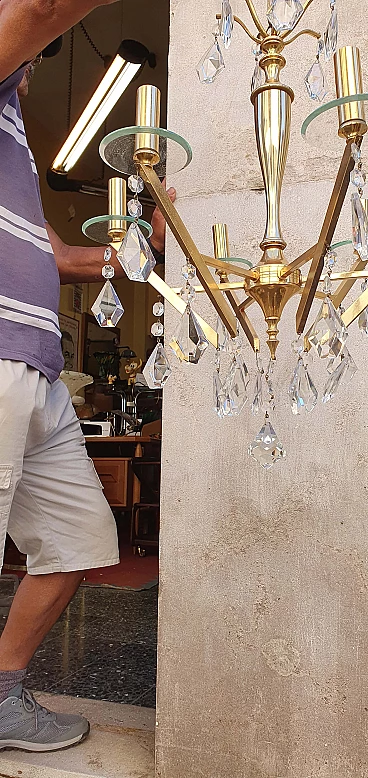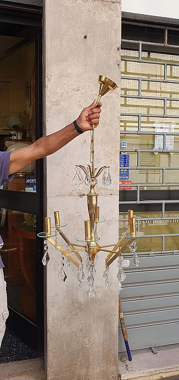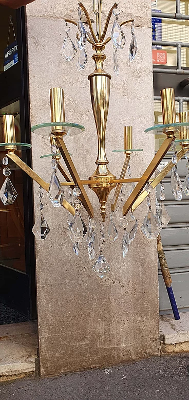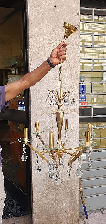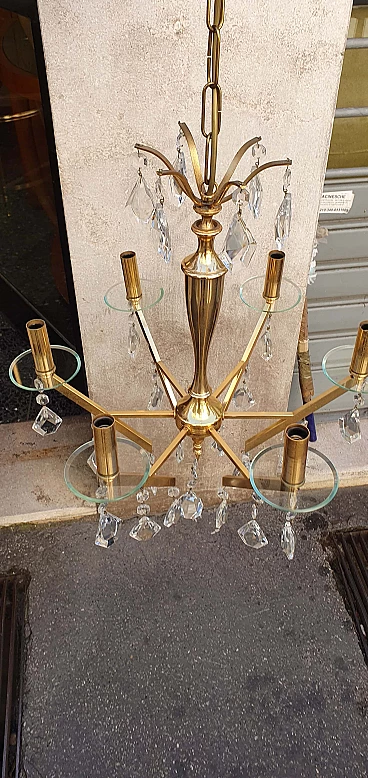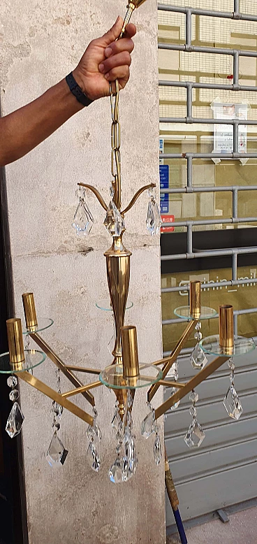 Chandelier in brass and glass, 1960s