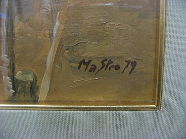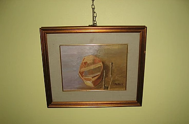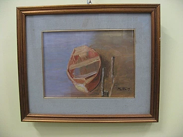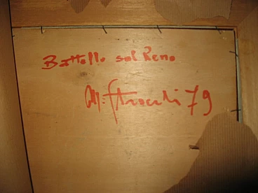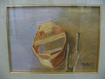 Mario Strocchi, Boat on the Rhine, oil painting on plywood, 1979