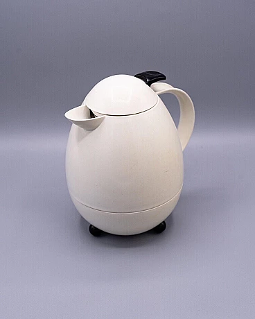 Columbus thermal carafe by Leifheit Vivatherm, made in West Germany. A playful example of postmodern design, this thermos is available with a plastic finish and a copper-lined inside for optimal drink temperature control. In 1980 it was a breakthrough in terms of mainstream design, making it a highly sought-after piece today. Embossed logo on the bottom. It has only minimal surface scratches and small marks or blemishes on the exterior surfaces, while the inside copper lining is in very good condition. Volume: 1 litre.