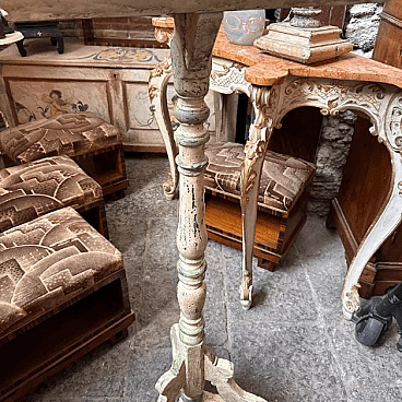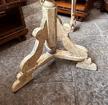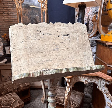 Sicilian lectern in white and green lacquered wood, late 19th century (around 1870). Specially designed to display and hold old books with a touch of elegance and sophistication. This lectern is a testament to the skill and craftsmanship of the Sicilian craftsmen of the time. The design of the lectern reflects a mix of traditional Sicilian motifs and European influences prevalent during that period. At the top is a sloping surface, specially designed to hold open books and make reading and viewing easier. The base of the lectern is supported by elegantly carved legs which add to its stability and serve as a beautiful addition to the overall design. These legs, adorned with subtle green and white detailing, elevate the lectern, allowing it to take center stage in any room where it is displayed. It has slight fading.