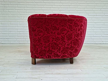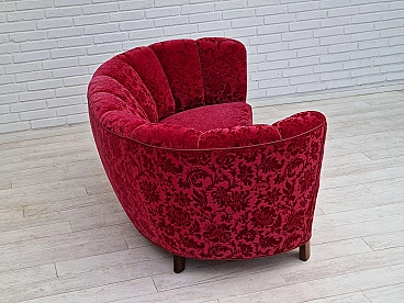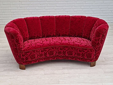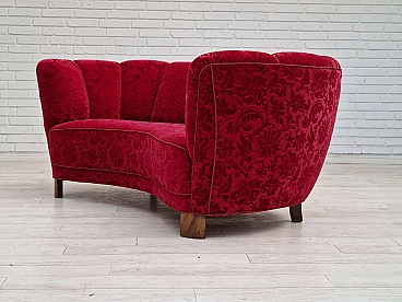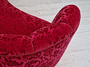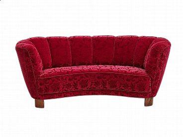 Danish three-seater Banana sofa in cherry-coloured fabric, 1960s