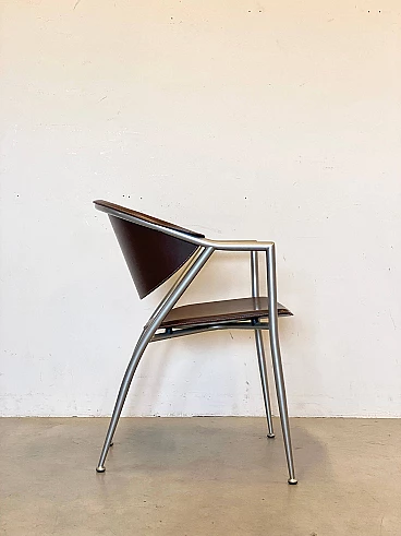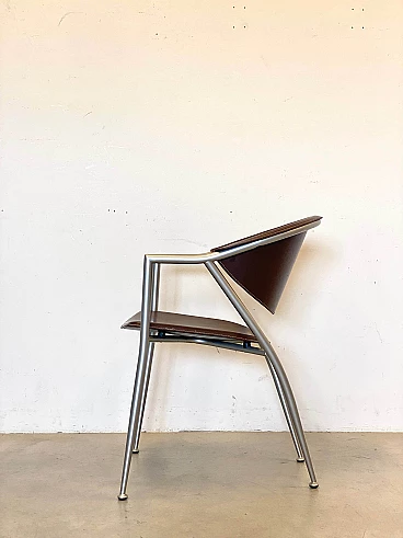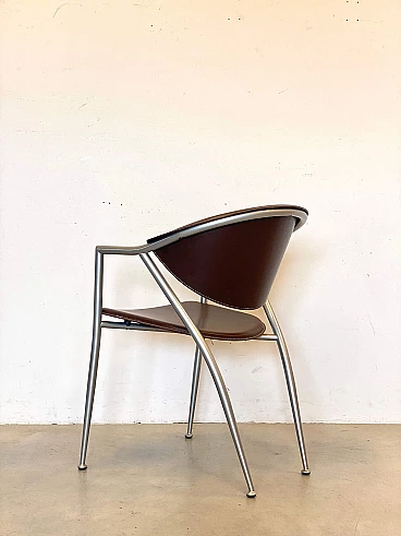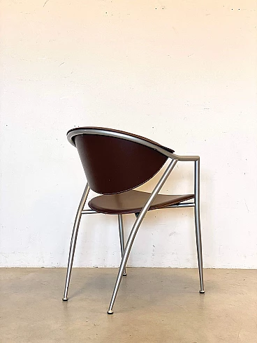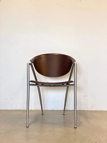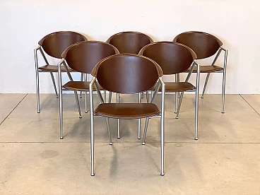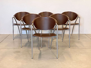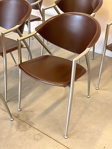 6 Varnished steel and leather chairs by Calligaris, 1990s