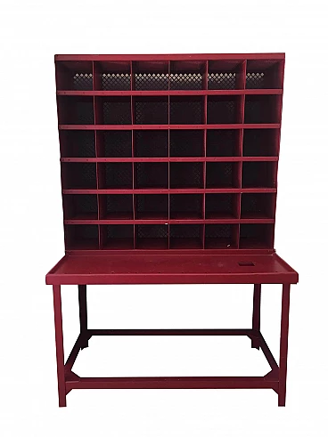Tolix Postal Mobile designed by Xavier Pauchard for the Tolix company, France. Made of iron, in the 40s, then sandblasted and oven painted. In good condition, used but with small signs of age and stains. Dark red color. No restoration work necessary. The drawer underneath the top is missing (easily reproducible).