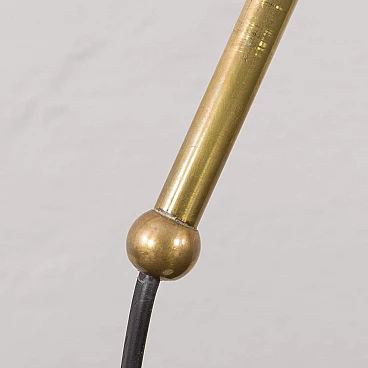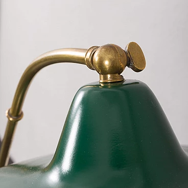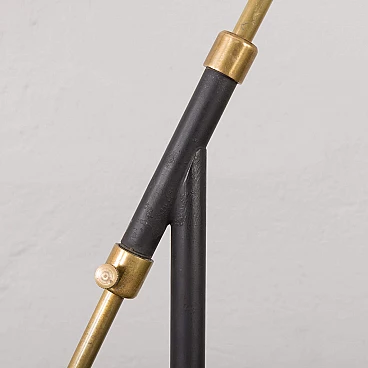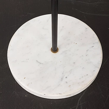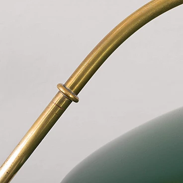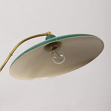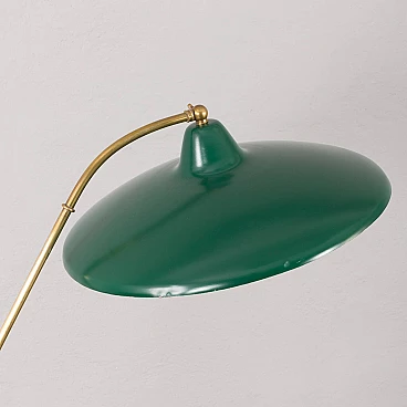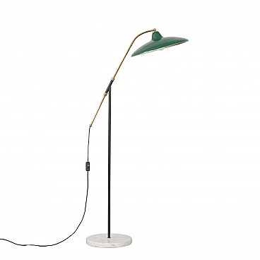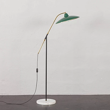Floor lamp attributed to Stilnovo, 1950s. Indeed, it bears a significant resemblance to the period designs of this renowned Italian brand. The lampshade, made of metal and painted in a rich bottle green shade, is attached to a solid brass structure. This brass element is partially lacquered in black and features a pendulum system, allowing both angle and height to be adjusted as needed. The entire structure rests on a Carrara marble base, which not only gives great stability but also exudes the characteristic charm of mid-century design. We have meticulously inspected and verified that the lamp is working properly. It is in excellent original condition with new wiring. It requires an E27 bulb. A new switch was installed for convenience. Base diameter: 29.5 cm. Cable length: 300 cm.