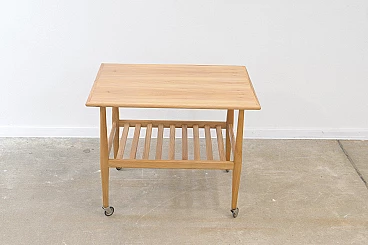 Beech coffee table with casters by Krásná Jizba, 1950s