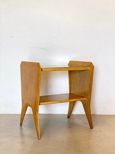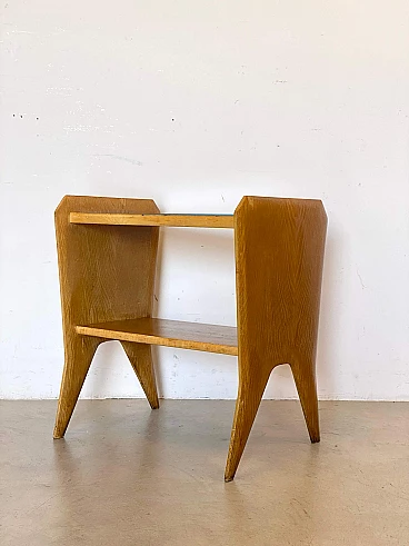 Wood bedside table with glass top in the style of Gio Ponti, 1950s