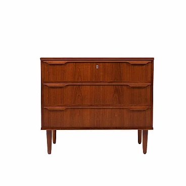 Mid century danish teak wooden chest of drawers. Front with 4 drawers. Standing on conical round feet. In very good vintage condition. Surface refreshed. Ready to stand.