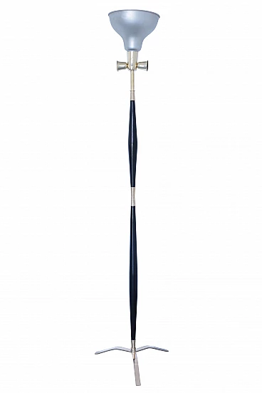 Floor lamp in black lacquered wood and brass details. Lampshade not available Electrical system to be replaced