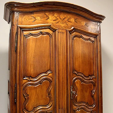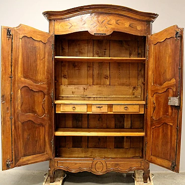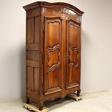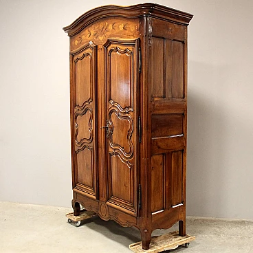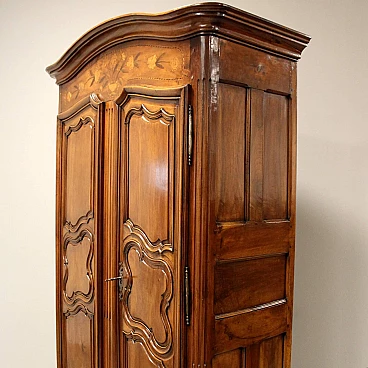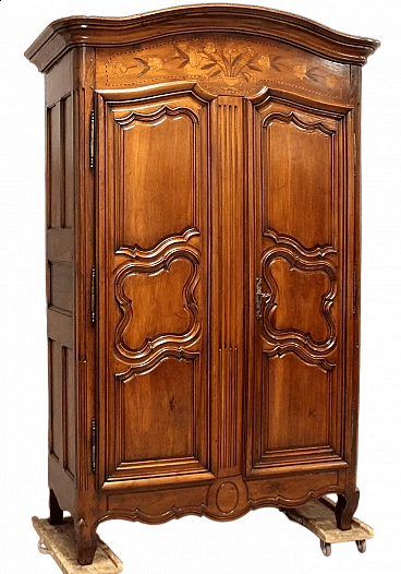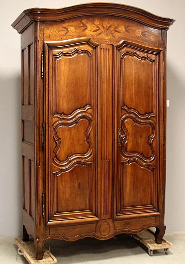 Inlaid solid walnut Louis XV wardrobe, 18th century - Louis XV. In perfect condition. On the actual condition of the object, please evaluate the photographs as they have priority value and are not debatable. We issue a Certificate of Authenticity. We are always at your disposal for any information, do not hesitate to contact us.