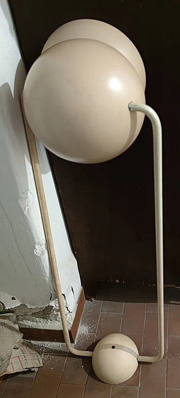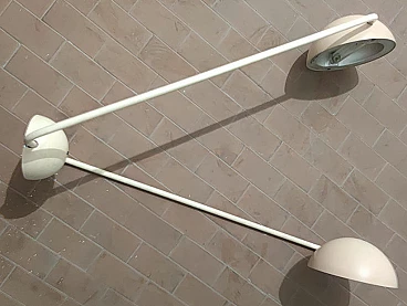 Ivory lacquered metal Bikini chandelier by Raul Barbieri and Giorgio Marianelli for Tronconi, 1980s. It has two halogen lamps. The two hemispheres are adjustable and the two arms also have adjustable angle. It has not been tested.