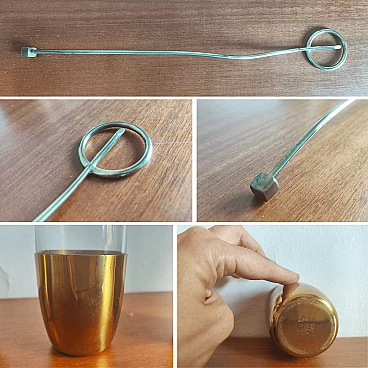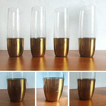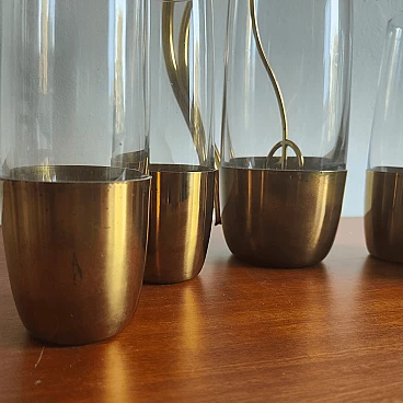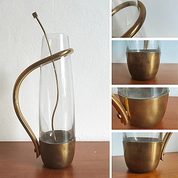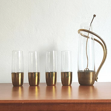 A refined crystal and brass cocktail set in the style of Gabriella Crespi. Consisting of four crystal glasses with brass base and a carafe with two sinuous brass arms, complete with bar spoon also in brass. Italian manufacture. Excellent vintage condition with slight signs of wear and tear and patina of time on the brass parts. Crystal intact, free of scratches or chipping. Please look carefully at the pictures which are an integral part of the description.