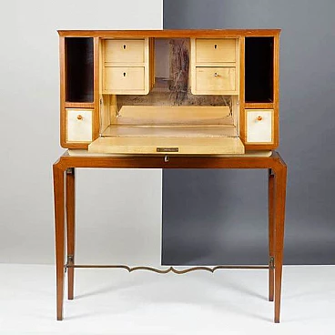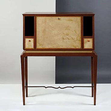 Walnut, parchment, mirror and brass cabinet by Tomaso Buzzi, 1950s