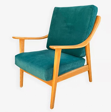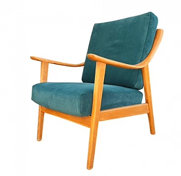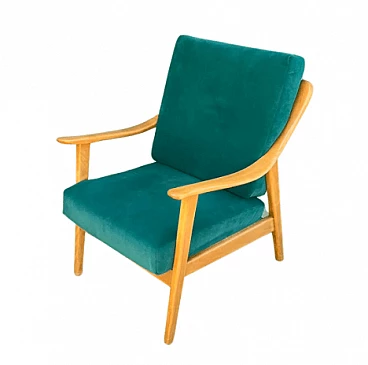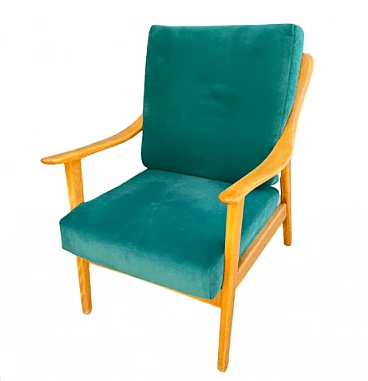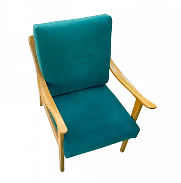 Solid beech and green Alcantara armchair by Casala, 1960s