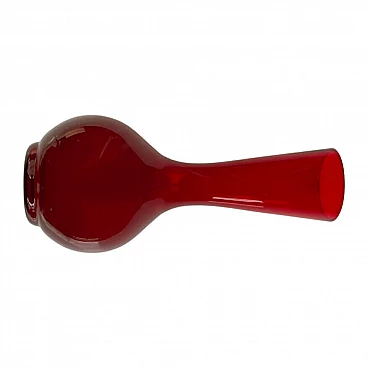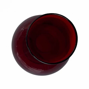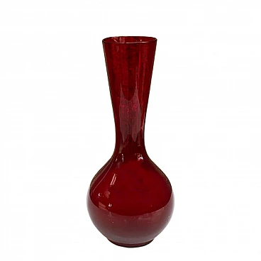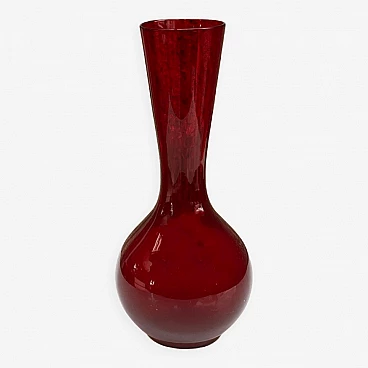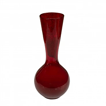 Glass vase designed by Ludwik Ferenc and produced by the glassworks 'Barbara'. Made of hand-moulded sodic glass and coloured in red and burgundy. Dimensions: height 25 cm; diameter 11 cm; base diameter 7 cm; entrance diameter 6 cm. Dimensions in inches: height 9.8 cm; diameter 4.3 cm; base diameter 2.8 cm; entrance diameter 2.4 cm. Very good condition, slight scratches on the bottom due to age. Historical background: It was founded in the mid-1950s on the initiative of Jan Myczka. The buildings were constructed on the site of the pulp and pine bath factory. The glassworks originally belonged to the Polanica-zdrój spa and produced 0.33-litre bottles of mineral water. On 1 April 1974, it was taken over by the 'sudety' glassworks and was reconstructed in December 1974. It started production under the name 'barbara' artistic glassworks. In the same year, Zbigniew Horbowy joined the company, working as artistic director. A design studio was set up to create short utility glass series. The studio team included Lucyna Pijaczewska, Ludwik Ferenc, Kazimierz Krawczyk and Czesław Zuber. From 1992 onwards, the steel mill operated as a private factory, mainly fulfilling orders from foreign customers. The 'barbarian' steelworks operated until 2018, when the plant was liquidated.