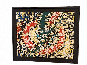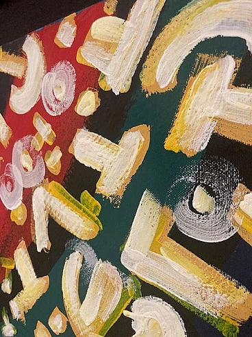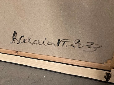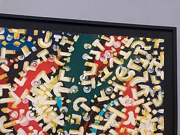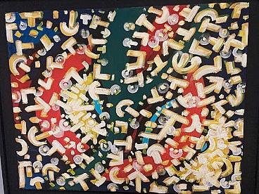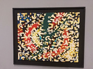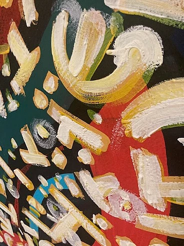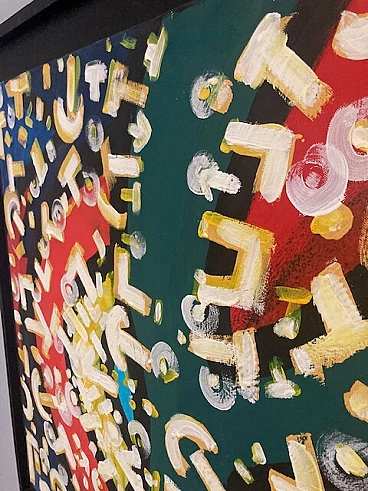 Acrylic enamel painting on canvas with black frame, early 20th century