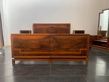 Art Deco double bed in walnut, briar and maple by Vezzani, 1930s