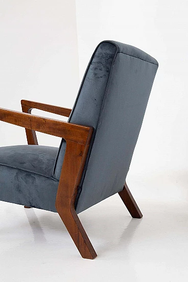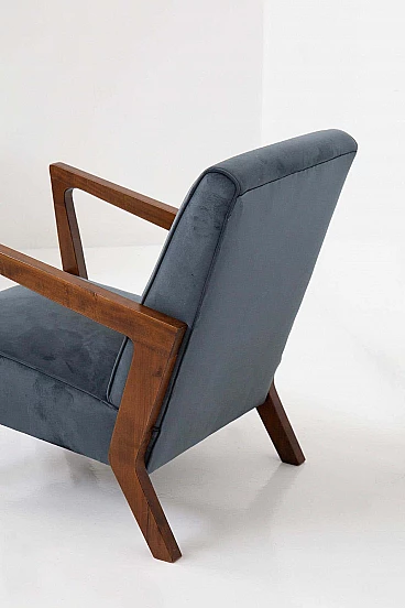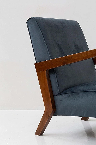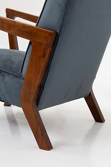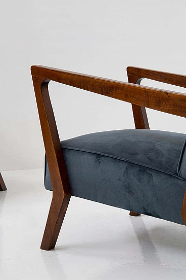 Pair of blue velvet and walnut armchairs, 1960s 8