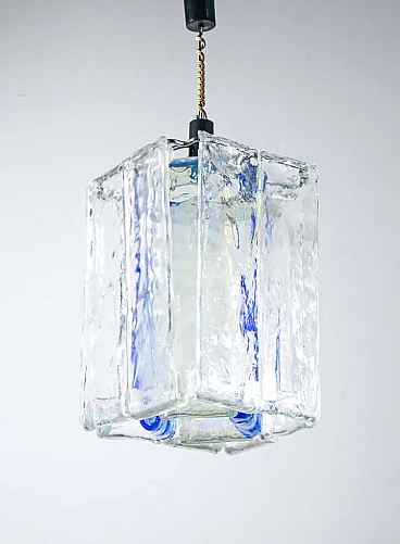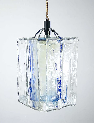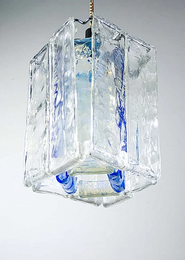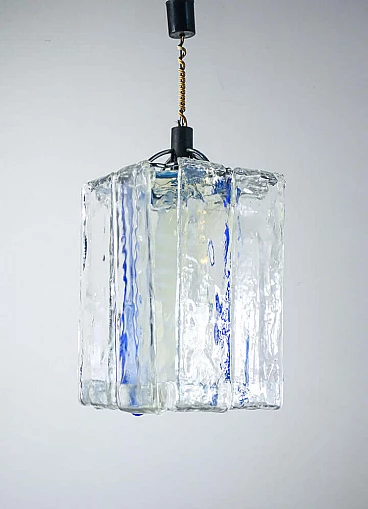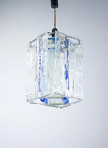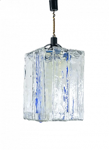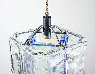 Transparent, iridescent and blue glass chandelier by F.lli Toso, 1970s