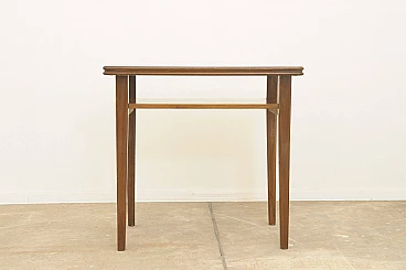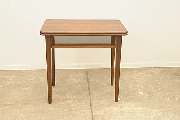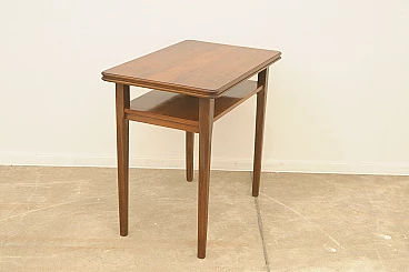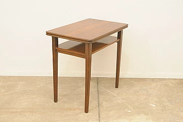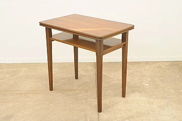 Czechoslovakian walnut coffee table with double shelf, 1950s