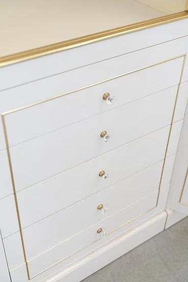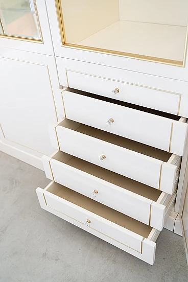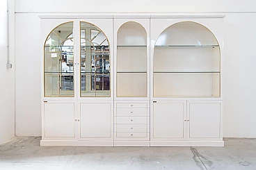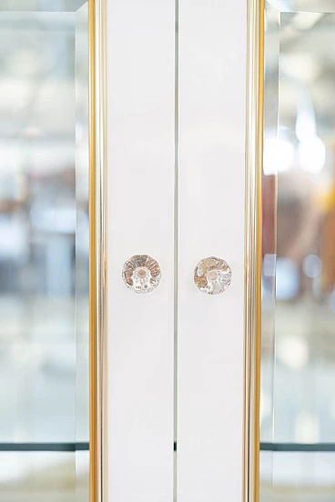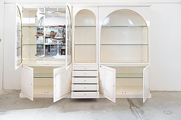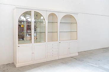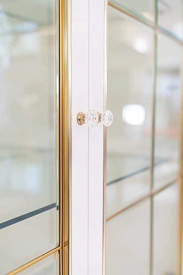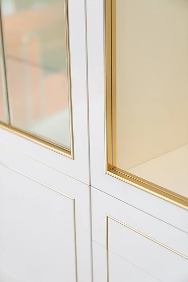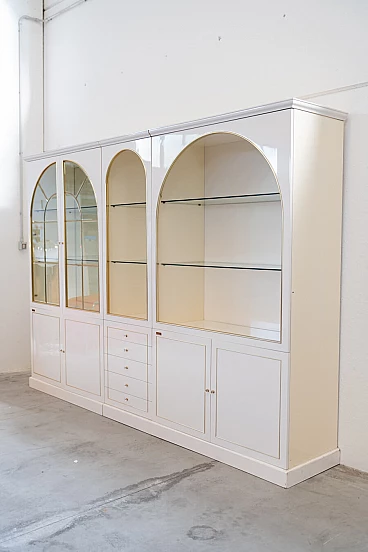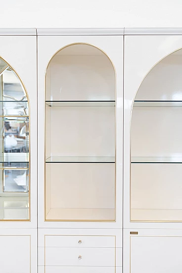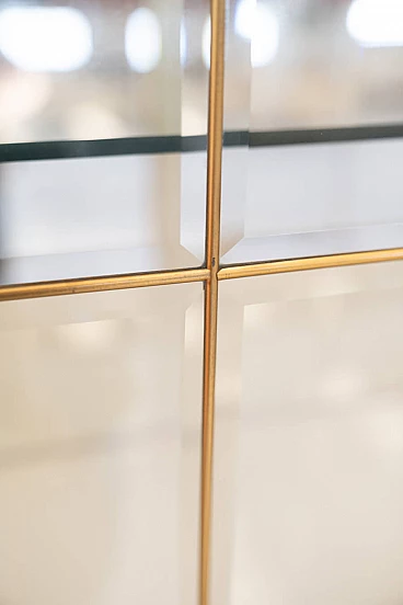 Modular wooden and brass sideboard with display case attributed to Mario Sabot, 1970s