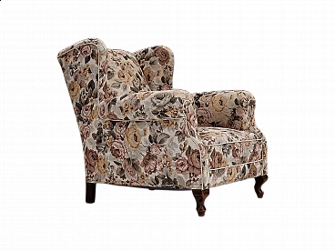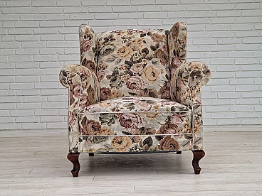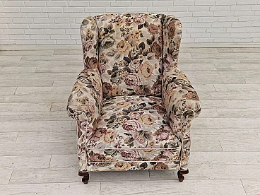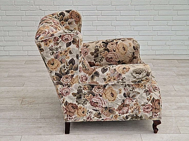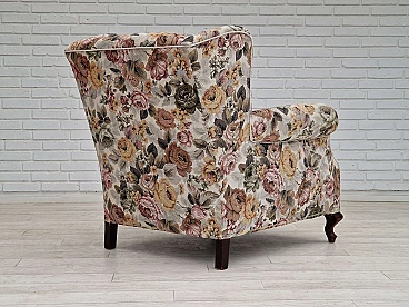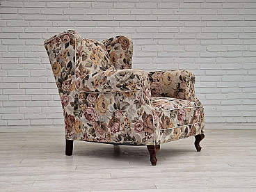 Danish floral fabric armchair with ash legs, 1950s