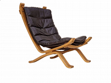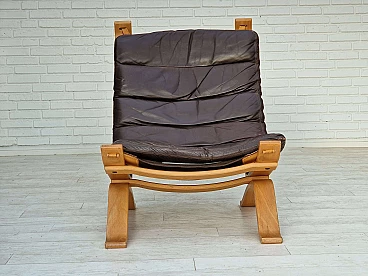 Plywood, leather and canvas Focus armchair by Bramin Møbler, 1970s